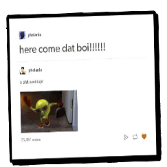Dat Boi doesn't warn you. He doesn't guide you. He doesn't care. He just rolls in, croaks "waddup," and suddenly you're down 70% but still bullish because the frog "has momentum."